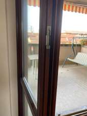 Internamente così diviso: ingresso sul soggiorno, cucina abitabile, disimpegno, due bagni e tre camere da letto, un balcone e un terrazzo. Aria Condizionata, riscaldamento autonomo. Completano la proprietà un ampia cantina direttamente servita da ascensore ed un ampia e comoda autorimessa al piano interrato.